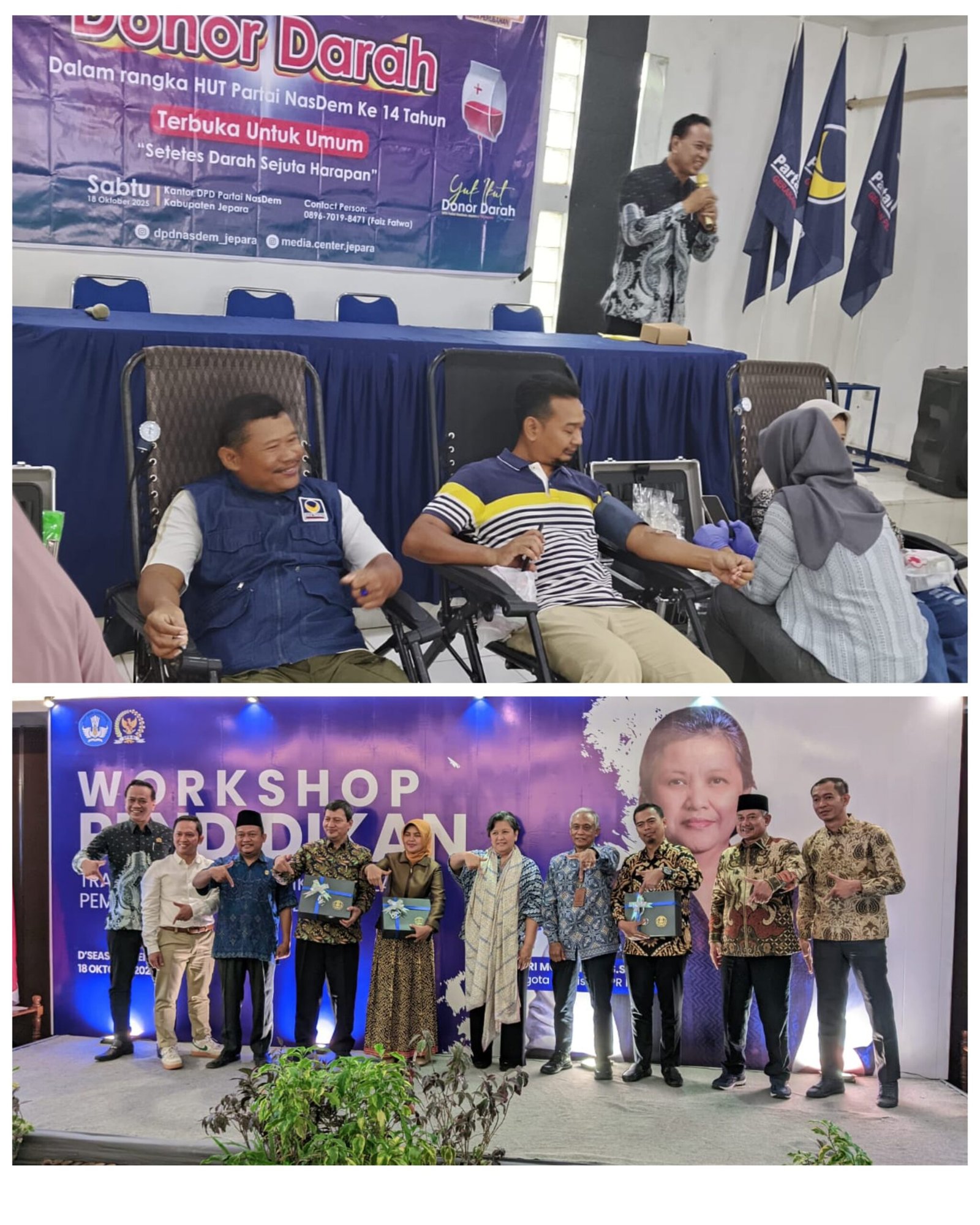 Dalam rangka memperingati Hari Ulang Tahun (HUT) ke-14, Partai NasDem Kabupaten Jepara menggelar kegiatan donor darah di kantor DPD Partai NasDem Jl. kM Sukri Potroyudan Jepara, Sabtu (18/10/2025).