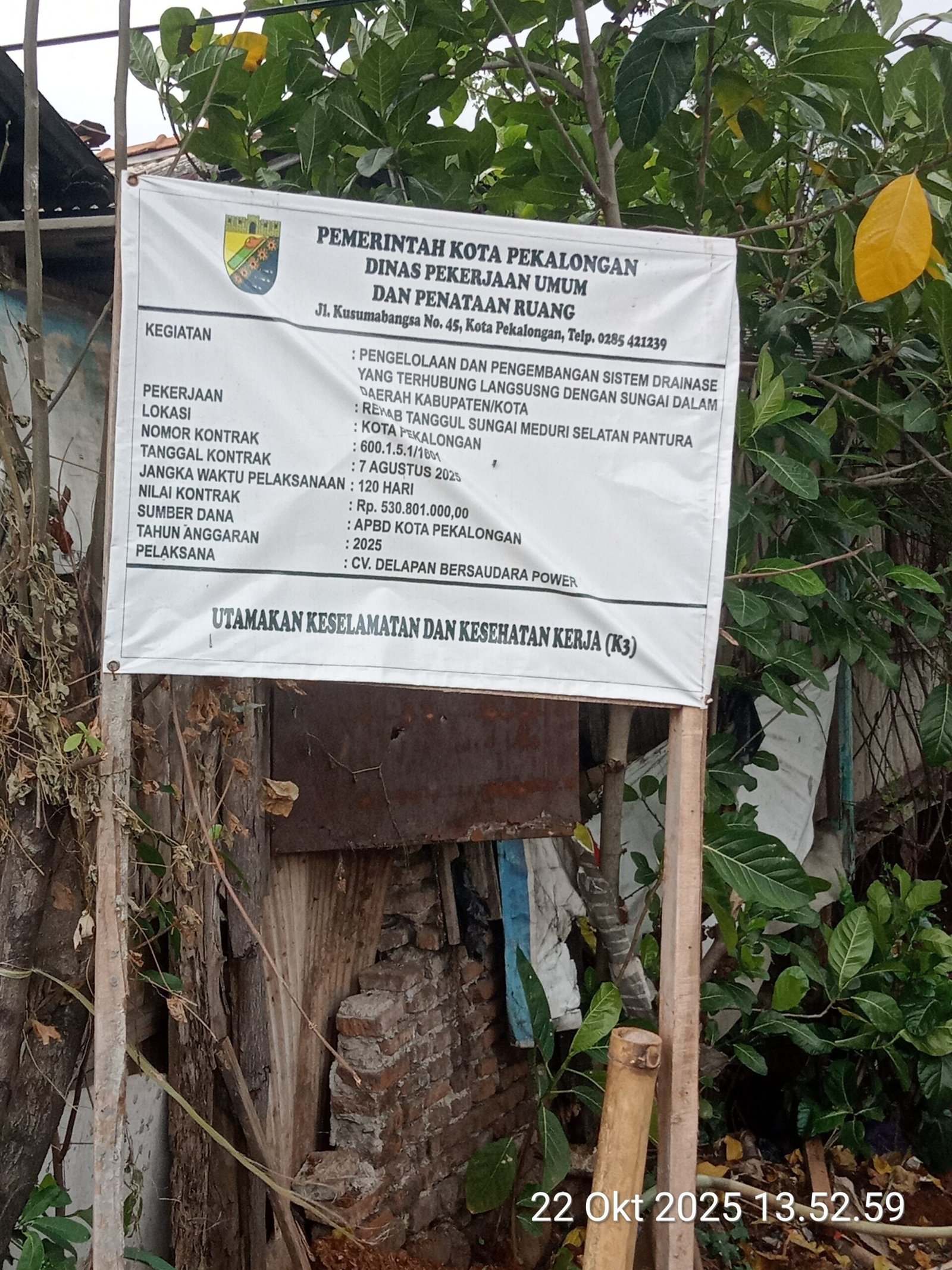 PEKALONGAN – Jurnal satu.Id, Pembangunan Tanggul Sungai Meduri Selatan Pantura Kota Pekalongan yang dilaksanakan oleh Pemerintah Kota (Pemkot) Pekalongan melalui Dinas Pekerjaan Umum dan Penataan Ruang (DPUPR) menjadi sorotan publik. Proyek senilai Rp 530.801.000,00 yang bersumber dari APBD kota Pekalongan, di laksanakan oleh CV. Delapan Bersaudara Power yang diduga dengan sengaja mengabaikan keselamatan dan kesehatan kerja (K3), padahal proyek tersebut seharusnya yang diutamakan (K3) seperti yang tertulis di papan informasi proyek.