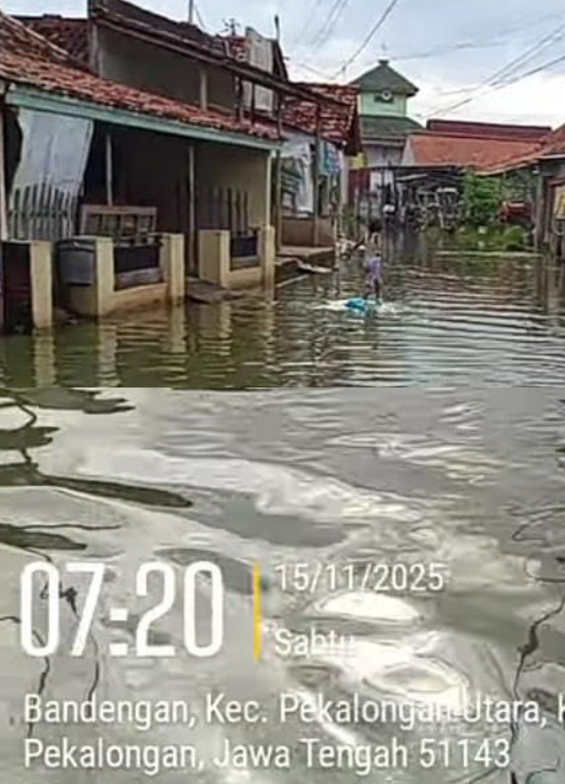 PEKALONGAN – Jurnal satu.Id, 15 November 2025 – Fenomena air pasang (rob) di wilayah pantura merupakan Permasalahan tahunan yang belum juga terselesaikan. Banjir rob maupun limpasan air sungai yang masih menghantui warga masyarakat, khususnya di Kelurahan Bandengan, Kota Pekalongan. Kondisi ini diperparah oleh adanya dugaan pemangkasan anggaran yang berdampak langsung pada proyek peninggian Jalan Selat Karimata sisi barat, yang menjadi lokasi langganan banjir dan genangan air yang tak kunjung teratasi.